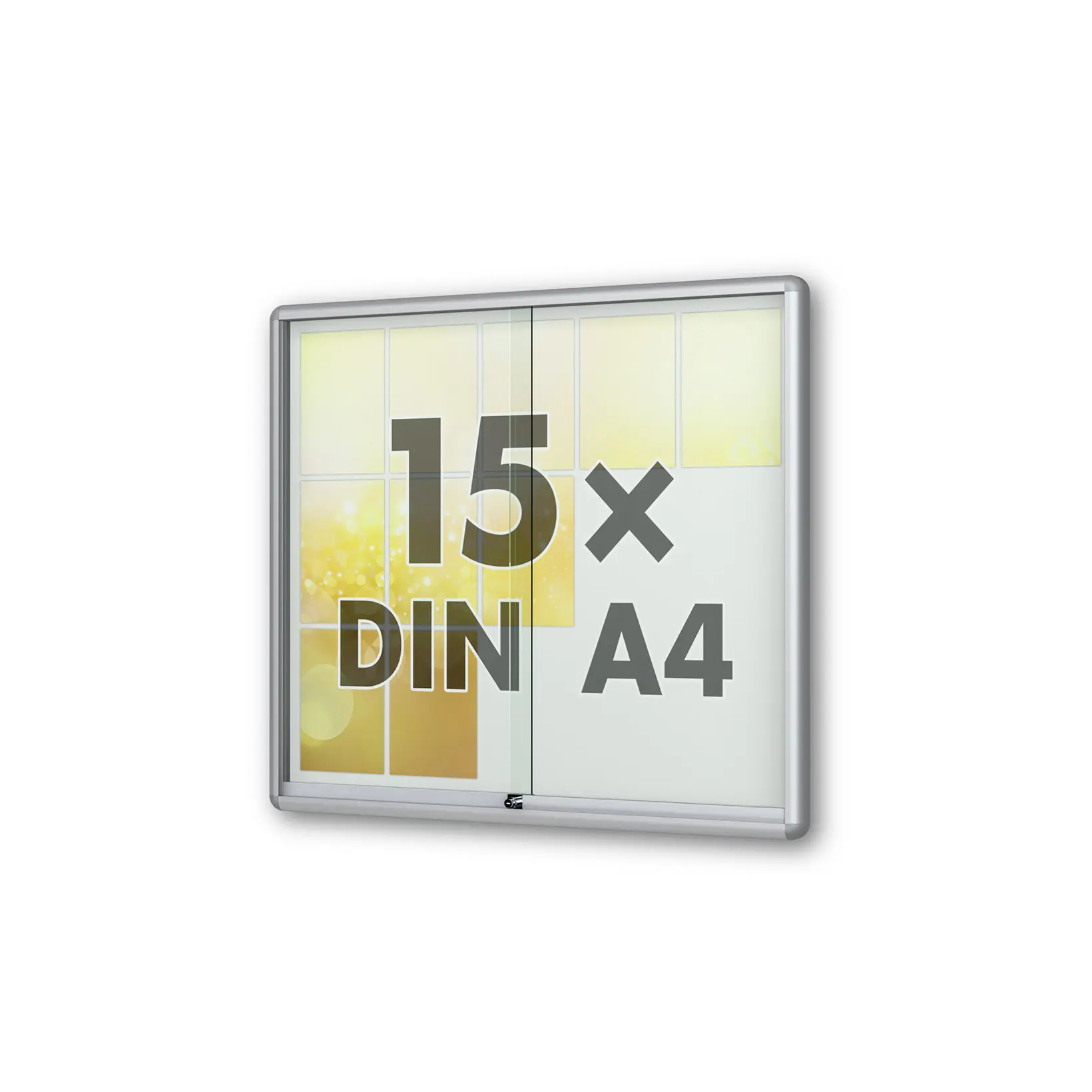 15 x DIN A4 Schaukasten Moveo - "die Schulvitrine" - 50 mm Bautiefe - mit Brandschutzklasse A1 - Rollengelagerte Schiebetüren✓ abschließbar✓ ESG-Sicherheitsglas✓