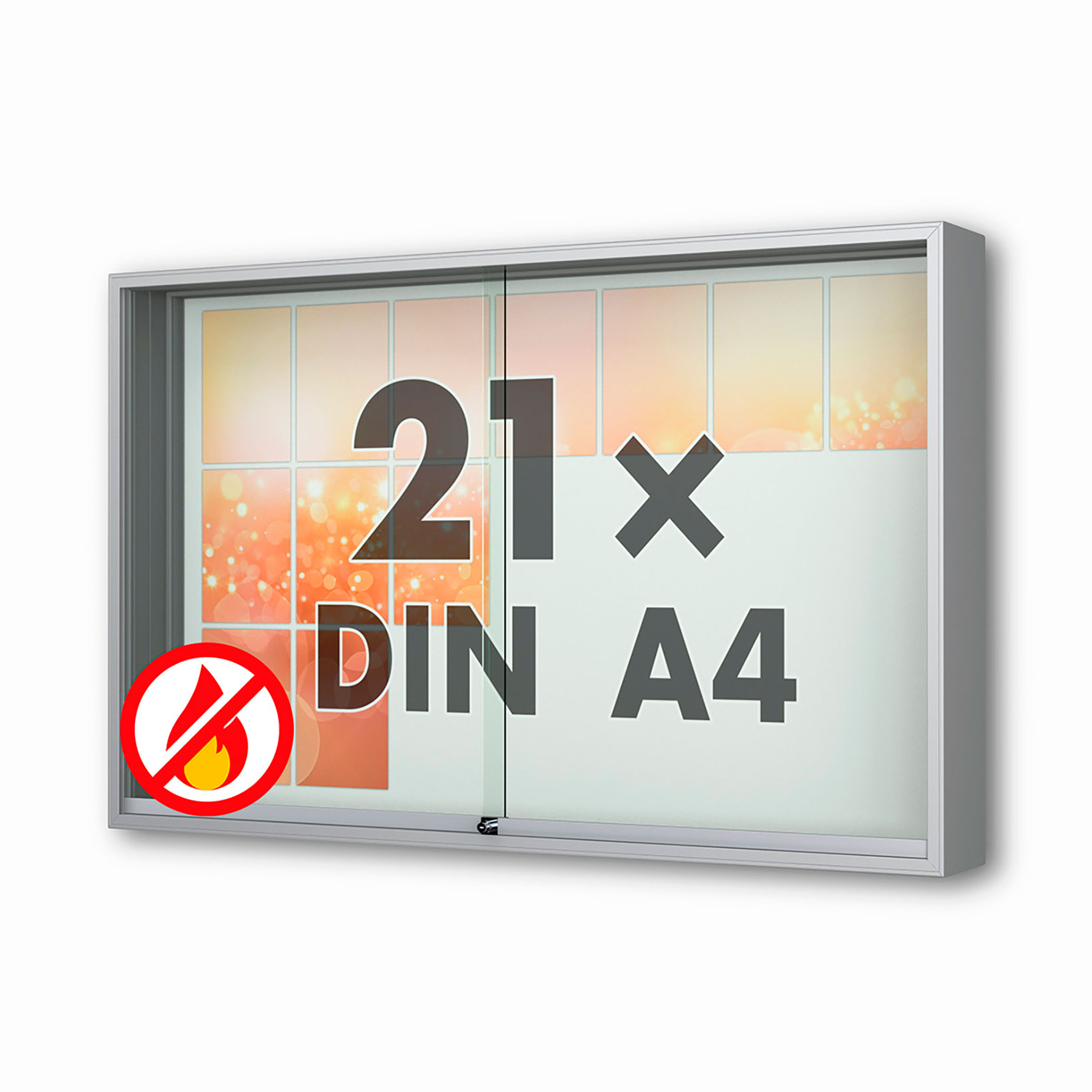Plakatvitrine: | Brandschutz, Montageort: Innen, Wandmontage, abschliessbar, mit Schiebetüren |
